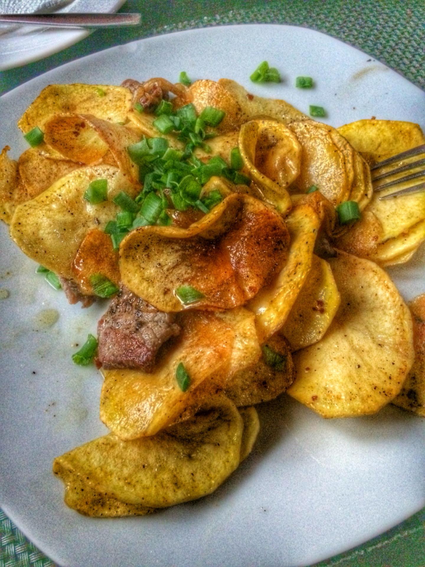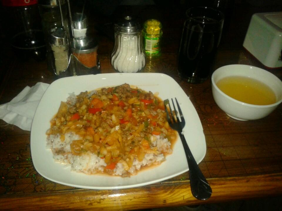 Попробуйте чай аспандияр(с мандаринами, лимоном и мятой).Понравился домашний картофель с мясом. Жареная картошка походит на чипсы, но мяса в порции маловато.В целом,цены демократичные и порции большие
