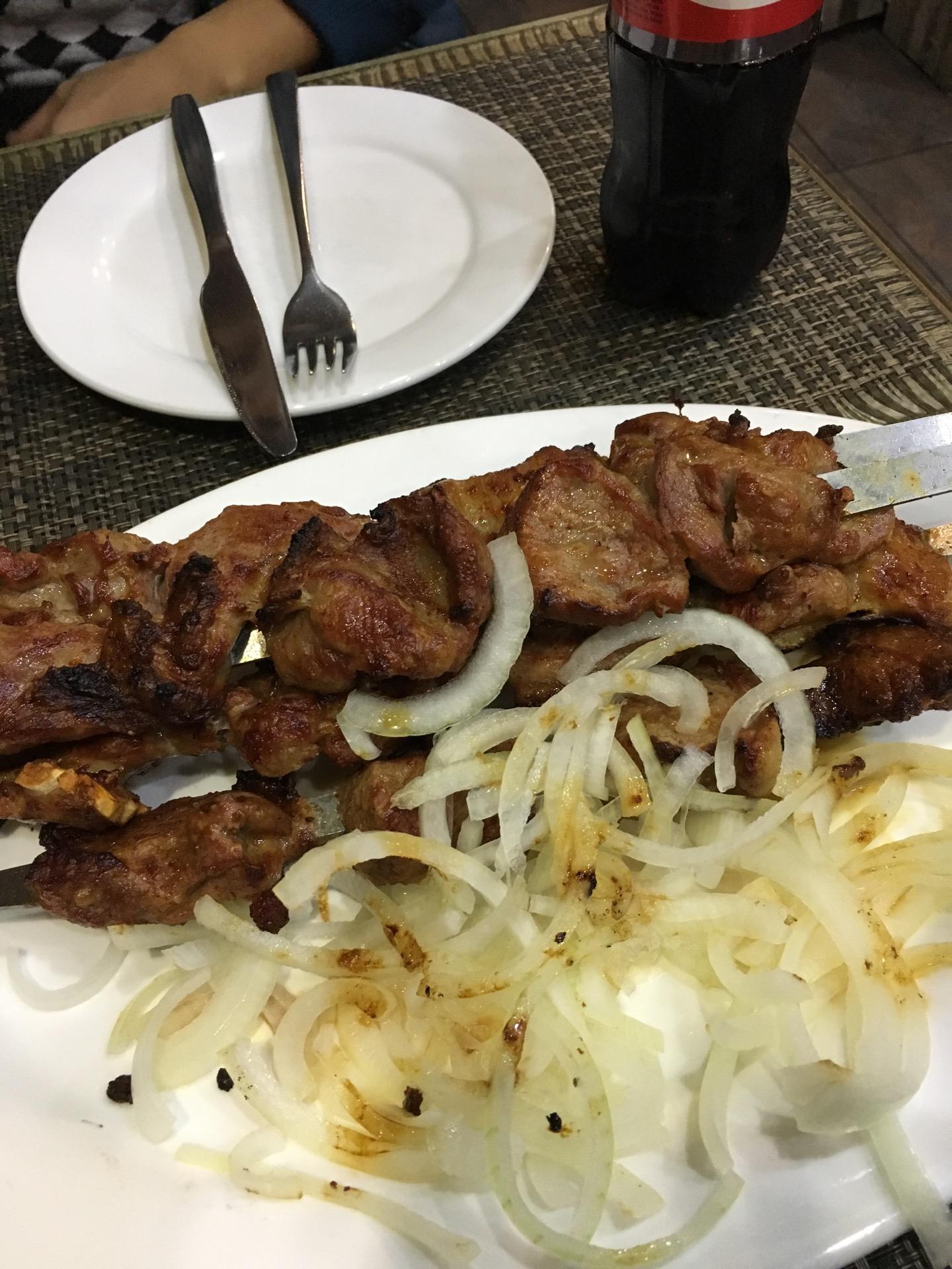 Все ужасно вкусно)хорошее обслуживание,адекватные(низкие)цены,всё свежее,немного людей по вечерам)попробуйте шашлык и свекольный салат!после 8 за музыкальное сопровождение берут по 200 тг(