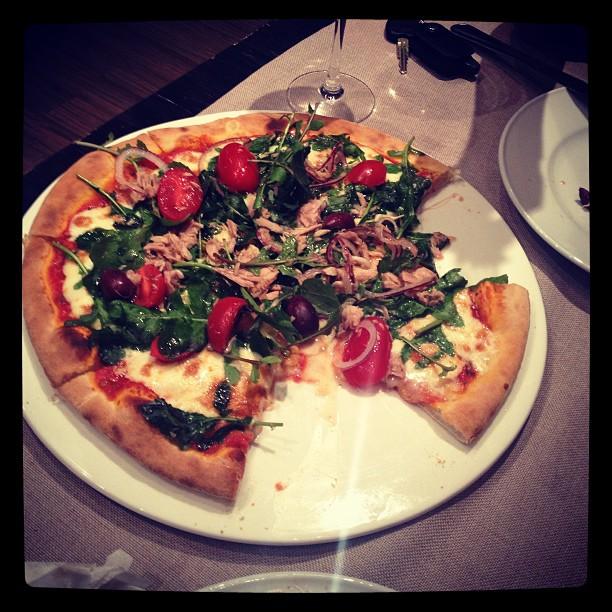 Мясо из 10 на 5! Пиццу принесли как буд то с холодильника готовую. Хлеб такой же. Офицант принёс воду открыл потом справил вам с газом 😂😂😂😂. Цены завышены для такого уровня еды!!!