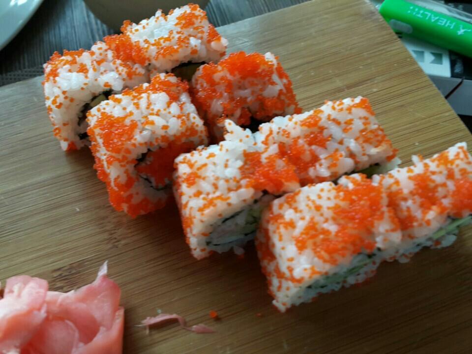 Есть доставка! Очень вкусные запеченные суши! Суши с угрем не рекомендую, угорь всегда невкусный.