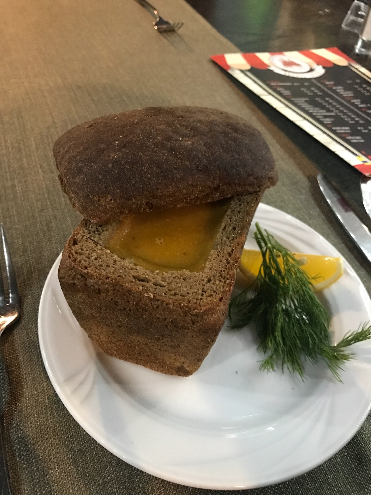 Место невнятное. Живая музыка — красиво поет парень. Еда средняя, цене не соответствует, долго.