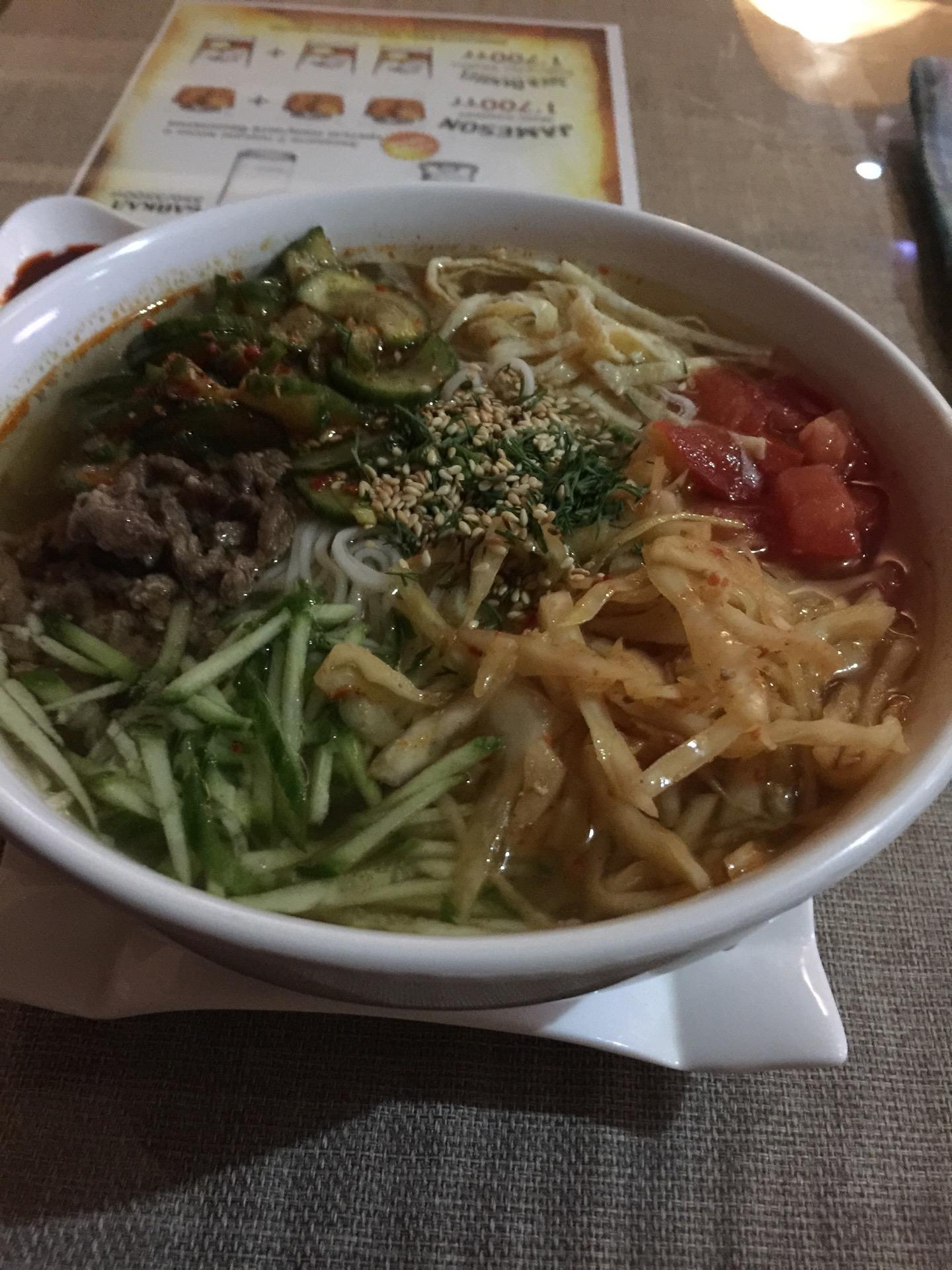 Понравился острый рамен. И не стоит пробовать пигоди из крахмального теста.